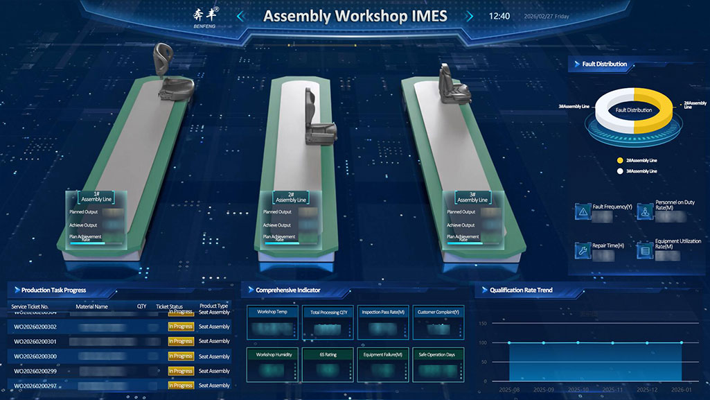 A Benfeng Seats IMES digitális ökoszisztémájában az összeszerelő műhely az intelligens, teljes folyamatkezeléssel a kész ülések minőségének végső tesztterévé válik.